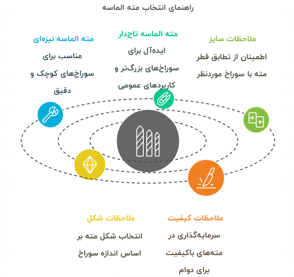 سایز: متهای را انتخاب کنید که قطر آن با قطر سوراخ موردنظر شما مطابقت داشته باشد.